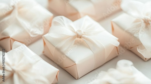 Close-up of wedding favors in elegant packaging, with clear space for text or branding