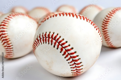 Closeup of White Baseballs with Red Stitching on a White Background in Studio Shot