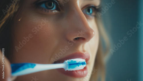 woman, brushing, teeth, closeup, toothbrush, beauty, healthy, smile, care, lifestyle, cosmetic, blue, sharpened, clean, hygiene, skin, health, cosmetic, mirror, dental, wellness, refreshing, freshness