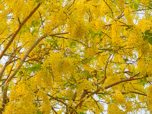 Closeup of yellow flower for background, Golden shower tree in summer season.