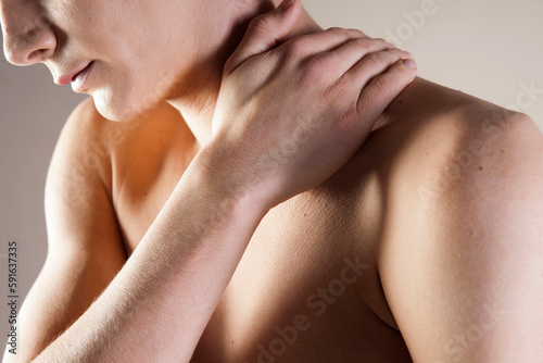 caucasian, colours, man, structure, closeup, detail, hold, hand, human, alone, muscle, grip, individual, teenage, bare, image, shoulder, european, interior, person, touch, part, picture, german, 1, photograph, skin, bruised, neck, youngster, rubbing, humanity, problem, cropped, agony, shirtless, head shot, uncomfortable, german, grey background, studio shot, one person, white, studio, close, body, adult, indoor