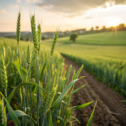 wheat, field, green, young, ear, closeup, vibrant, agriculture, landscape, spring, crop, sunlit, grain, nature, photo, shallow, depth, vegetation, cereal, plant, farm, scenery, gold, lighting, organic, farming, dirtied, rural, countryside, harvest, stalk, land, eco, farmhouse, cultivation, harvested, fertile, crop, texture, environment, growth, springtime, natural, season