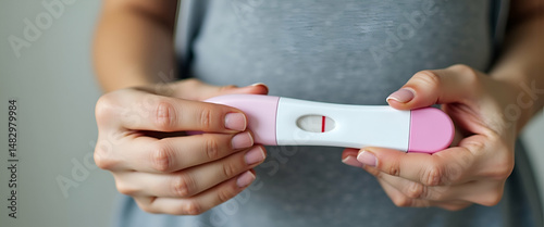 Close-Up of Young Woman Holding Pregnancy Test for Family Planning and Health Awareness - Empty Space for Text