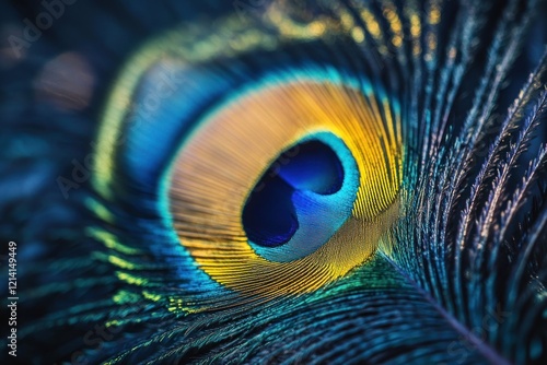 Close-up peacock feather, vibrant colors, bokeh background, nature design