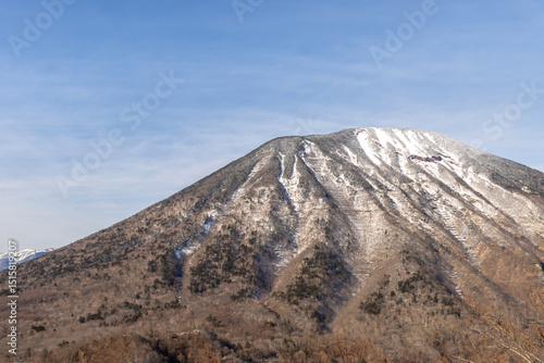 mountain, natural, nature, environment, blue, sky, white, snow, peak, summit, cloud, background, forest, tree, winter, season, cold, scenery, scene, landscape, range, crater, closeup, green, covered, majestic, beautiful, idylli, view, fresh, surface, bright, travel, destination, high-coloured, vibrant, colours, clear, light, capped, slope, volcano, mountain, scenic, hill, outdoors
