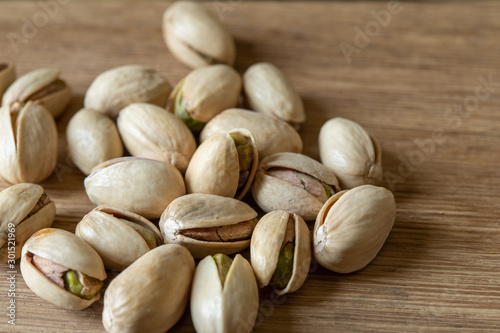 Close-up Pistachio nut on wood background