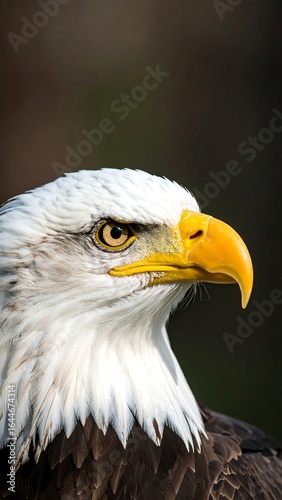 Close-up portrait of a bald eagle, head and shoulders, looking to the right, sharp focus, natural setting