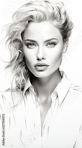 Close-up portrait of a beautiful young woman. Black and white drawing