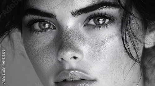 model, portrait, face, eye, closeup, beauty, aesthetic, skincare, feature, expression, monochrome, freckle, gaze, detail, emotion, photo, artistic, shadow, light, natural, skin, youth, elegance, serene, candid, woman, fashion, style, minimalism, creativity, artistry, softness, striking, clarity, sharpened, allure, charme, delicate, simplicity, visual, image, inspiration, stunning, captivating