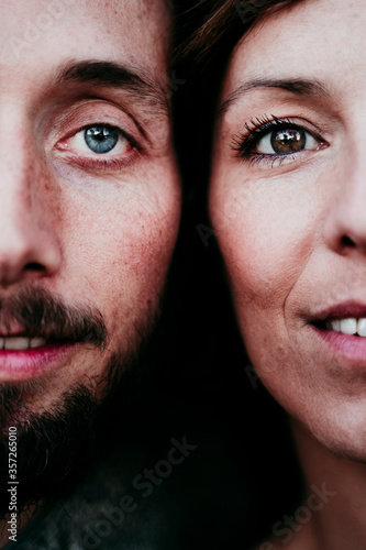 closeup, portrait, smiling, couple, people, emotion, adult, woman, man, caucasian, mid, love, detail, positive, face, togetherness, eye, day, bonding, human relationships, outdoors, individuality, affection, spain, candid, happiness, joy, male, female, head, happy