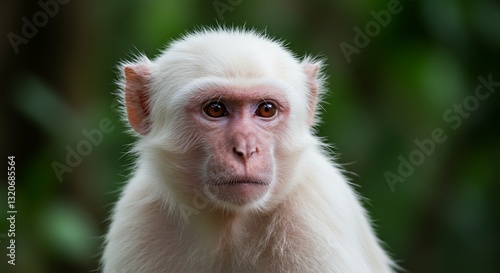 monkey, white, albino, primate, animal, wildlife, portrait, closeup, mammal, fauna, nature, zoology, cute, adorable, furry, eye, face, expression, serious, intense, green, background, tropical, forest, jungle, habitat, photo, closeup, macro, wild, fur, soft, rare, unusual, exotic, conservation, endangered, species, scene, natural