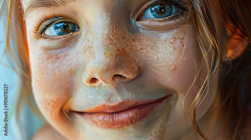 girl, children, portrait, face, eye, blue, freckle, smile, happy, cute, adorable, young, innocence, childhood, beauty, closeup, detail, skin, human, model, artistic, illustration, photo, art, watercolor, pastel, soft, tender, love, joy, hope, dream, fantasy