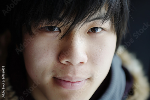 asian, chinese, japanese, man, closeup, portrait, looking, male, young, posing, studio, young adult, youth, people, person, 1, head, face, eye, look, lip, beauty, beautiful, model, attractive, diversity, ethnic, ethnicity, expression, natural look, sensuality, confident, strength, focused, guy, life, stylish, elegant, glamourous, photogenic, charming, happiness, joy, fashionable, jacket, copy space, smile, casual attire