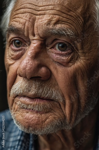 Close-up portrait of an elderly man, showcasing the texture of his weathered skin and the depth of his expressive eyes.