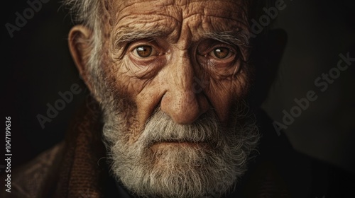 man, portrait, elderly, face, wrinkle, eye, beard, white, grey, hair, skin, nose, mouth, lip, chin, expression, pensive, thoughtful, aged, senior, old, wisdom, life events, human, emotion, feeling, dark, background, light, shadow, sharpened, detail, texture, studio, photo, art, life, humanity, longevity