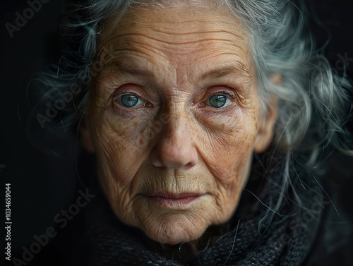 Close-up Portrait of an Elderly Woman with Deep Blue Eyes
