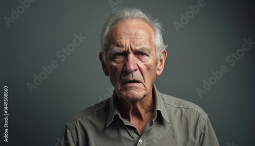 Close-up portrait of elderly man with intense expression. Glares lips tightly pursed, nostrils flaring, conveying disgust. Facial details, textures, wrinkles add to emotional realism, capturing age,