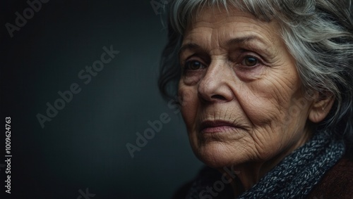 closeup, wrinkle, grey hair, contemplative, mature woman, aging process