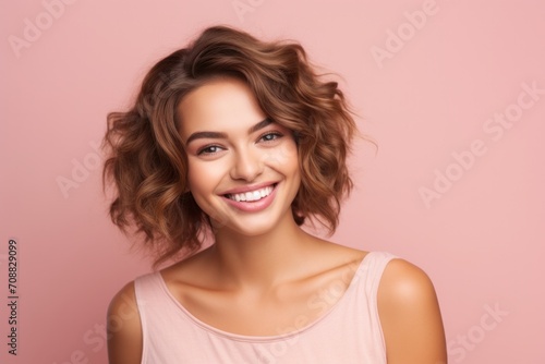 Close-up portrait of yong woman casual portrait of aucasian Asian, african american portrait woman on pastel background , Generative AI