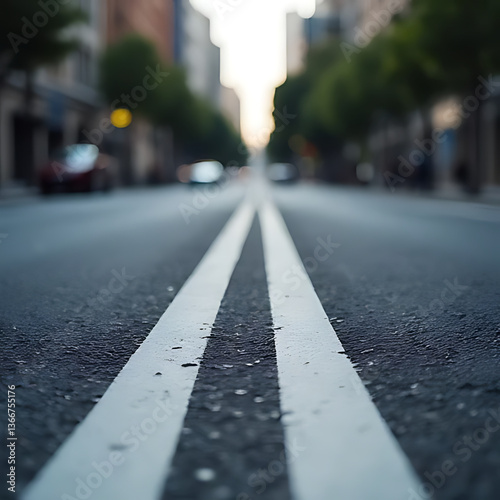 close-up shot of a well-marked bicycle lane with sharp, clear lines and a blurred background