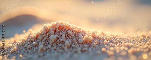 Close-up shot of fine, light-colored sand shimmering and reflecting light, evoking a feeling of levity and playfulness; perfect for whimsical or joyful themes , nature, desert, detail