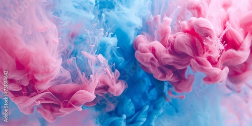 Closeup Shot Of Vivid Pink And Blue Ink Swirling Artistically In Water