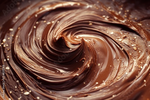 Close-up Swirling Chocolate Spread with Hazelnut Pieces
