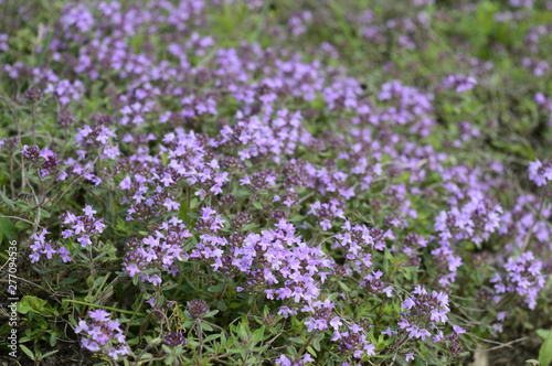 Closeup Thymus kosteleckyanus called also Thymus pannonicus with blurred background in summer meadow