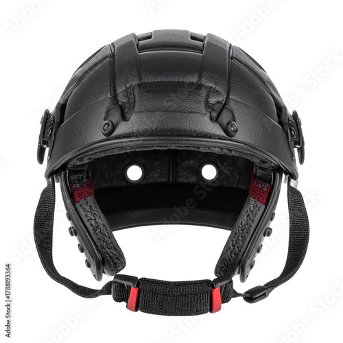 helmet, engineered, design, technology, innovation, modern, advanced, security, defense, hard-wearing, robust, strong, equipment, gear, accessory, interior, underside, padding, chinstrap, strap, buckle, adjustable, dark, studio shot, isolated, black background, closeup, detail, professional, high-quality, law enforcement, army, police, protection, sport, extreme sport, no people, product