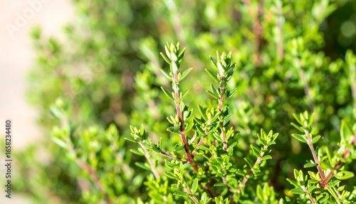 Close-up vibrant green thyme sprigs