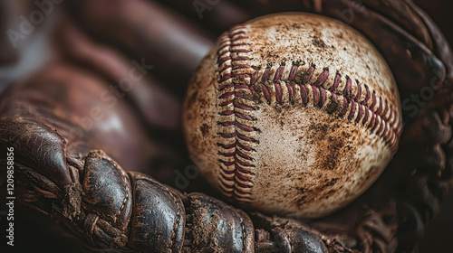 Close-Up View of a Baseball Nestled in a Worn Leather Baseball Glove