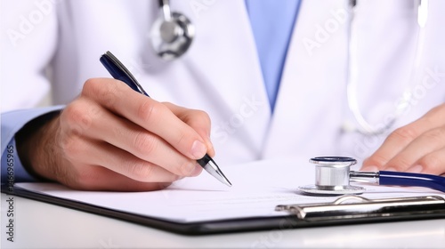 doctor, hand, writing, clipboard, medicals, pen, stethoscope, patient, record, health, care, white, coat, blue, closeup, detail, sharpened, professional, document, note, paper, exam, office, desk, work, person, professionalism, careful, detailed, precise, focused, serious, attention, concentrated, recording, information, diagnosis, treatment, caretaker, health care, clinical