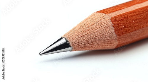 Close-up view of a sharpened pencil point on a white background emphasizing precision