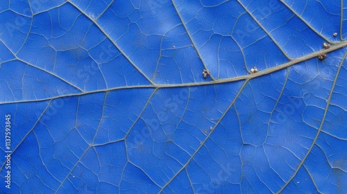 Close-up View of a Vibrant Blue Leaf's Intricate Structure