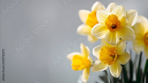 Closeup view of daffodils symbolizing Welsh heritage gentle daylight minimal background with soft blur elegant and calm holiday styling negative space f