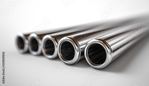 Close-up View of Polished Metal Pipes Displaying Smooth Surface and Shiny Finish Perfect for Industrial and Architectural Use in Various Projects