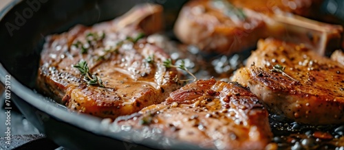 pork meat, chop, meat, steak, roast, frying pan, cutlet, dish, tenderloin, bar-b-q, grill, beef, sirloin, cooked, plate, fat, beefsteak, juicy, baked, fillet, bar-b-q, table, food, calorie, spice, dinner, lunch, grilled, roasted, fried, herb, frying pan, slice, closeup, cut, dark, delicious, eat, fresh, hot, tasty, unhealthy
