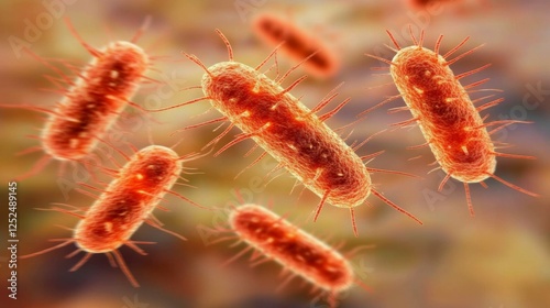 Close-up view of salmonella bacteria under a microscope, showcasing vibrant colors and rod-shaped structure, representing microbiology and scientific research concepts.