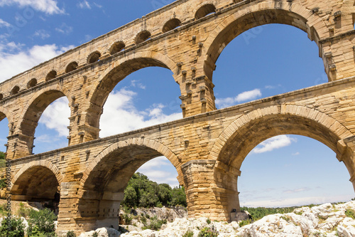 bridge, france, europa, roman, aqueduct, architecture, stone, ancient, old, history, historic, historical building, landmark, water, summer, french, european, roma, arch, engineering, scenery, scenic, attraction, heritage, historical, earth, unesco, sightseeing, southern, sight, architectural, provence, famous, sky, achievement, languedoc, travel, culture, archaeology, ruin, archway, masonry, closeup