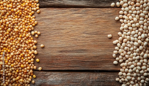 Close-Up View of Yellow and White Seeds Spreading Across a Wooden Surface Creating a Rustic and Organic Feel for Food and Agriculture Illustrations