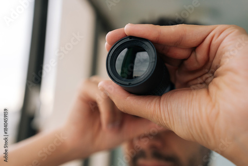 binocular, monocular, spyglass, hand, holding, closeup, caucasian, young adult, voyeurism, man, window, looking, home, watching, indoor, goggles, person, room, view, spying, lifestyle, search, discovery, leisure, vision, male, curious, privacy, peeking, peeping, observing, curiosity, investigation, secret, hidden, research, distant, finding, adventure, exploration, sharpened, studying, equipment, device, seeing, perspective, travel, nature, wildlife, accurate