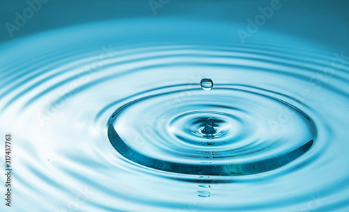 Closeup Water drop falling on the surface of the water and beautiful circular wave ripple, fresh natural mineral water drink water concept