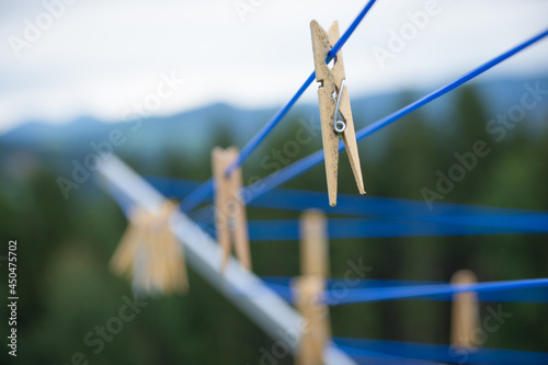 sky, energy, power, wind, line, turbine, electricity, laundry, windmill, nature, clothespin, fence, peg, wood, wire, clothes line, electric, pinned, washing, hanging, blue, clip, grass, wooden, drying
