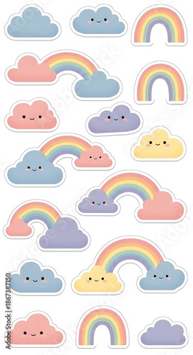 cloud, cloud, rainbow, rainbow, sticker, sticker, cute, pastel, sky, weather, happy, smiling, illustration, vector, design, graphic, art, children, baby, childcare center, decoration, decorative, cheerful, spring, summer, good weather, happiness, dream, fantasy, magical
