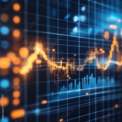 Cloud-based financial platform displaying real-time stock market information, with futuristic graphs, charts, and global connectivity