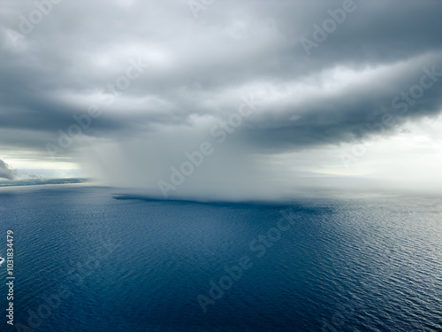 Cloudburst in the ocean near the coast.