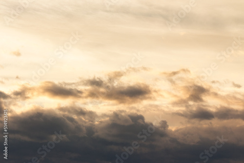 clouds on the sky in golden hour light. warm weather in summer at sunset