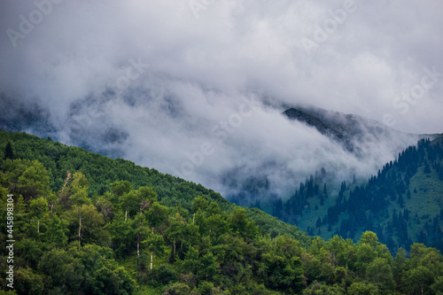 mountain, landscape, nature, sky, cloud, cloud, mountain, forest, fog, tree, green, view, summer, hill, tree, grass, weather, travel, mist, scenery, peak, storm, rain, rainforest, field