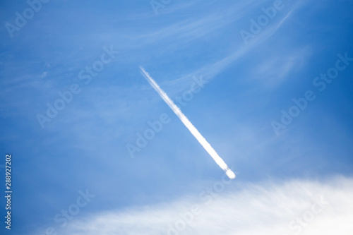sky, aeroplane, plane, blue, jet, aircraft, trail, travel, flight, air, fly, condensation trail, cloud, flying, cloud, white, transportation, aeroplane, transport, glider, trace, speed, wing, clear, smoke, atmosphere, background, beautiful, beauty, bright, clean, climate, cloudscape, cloudy, colours, covered, thundercloud, cumulus, day, front, heaven, high, image, landscape