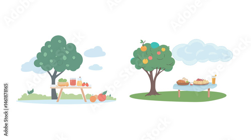 Cloudy sky over a suburban backyard, with a tree standing next to a table, creating a peaceful and serene outdoor scene, ideal for nature, relaxation, and suburban lifestyle themes.